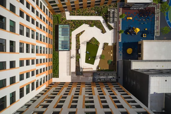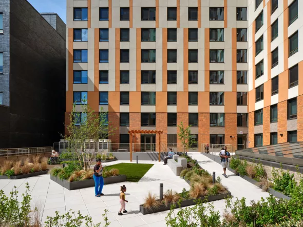 Chestnut Commons places sustainability and energy efficiency at the forefront of its design. The project achieved Enterprise Green Communities 2015 certification, NYSERDA’s New Construction Program – Tier III energy savings and Phius Certification May 2023. Standout features include an all-electric high efficiency mechanical design, rooftop solar panels, green spaces, and passive solar shading. These measures align with the project's commitment to promoting a healthy and sustainable lifestyle for residents.