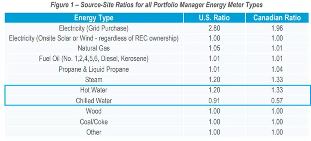 - Source energy factors for systems tied to the DES are ascribed the associated average source energy factor from Energy Star portfolio manager (Figure 1).