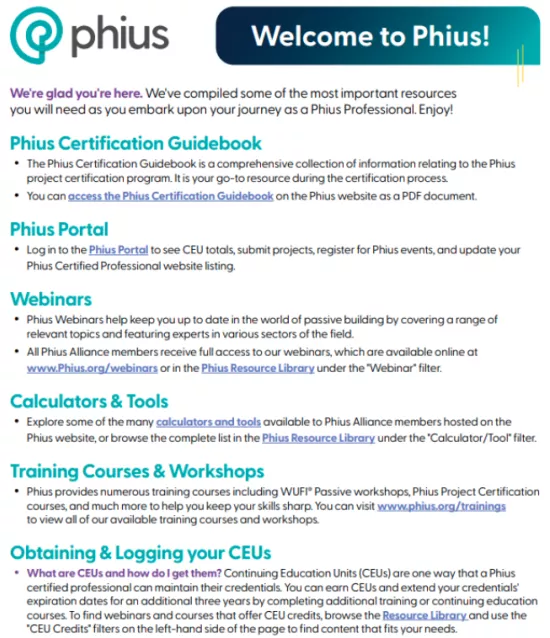 A guide with links to some of the most commonly used resources for Phius Alliance Members and Phius Professionals.